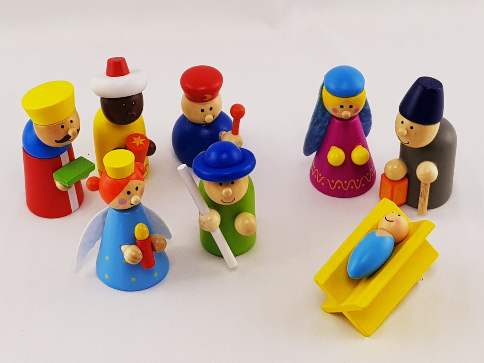 In diesem kindgerechten Krippen-Set finden sich alle wieder, die unbedingt zu Weihnachten gehören: das Christkind, Maria und Josef, die Tiere, der Engel und die drei Weisen aus dem Morgenland. Ideal zum Spielen und Nachspielen aber auch zum Dekorieren. Größe des Stalles: 23 x 11,5 x 16 cm. Höhe einer Figur (Josef): 9 cm. Achtung! Nicht geeignet für Kinder unter 36 Monaten (Verschluckungsgefahr!)