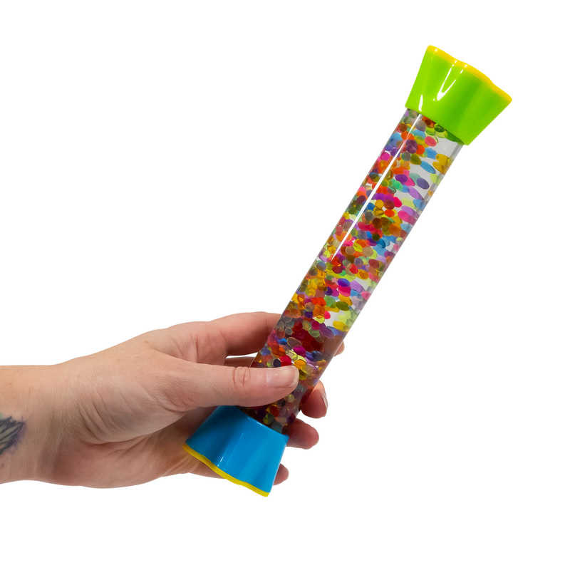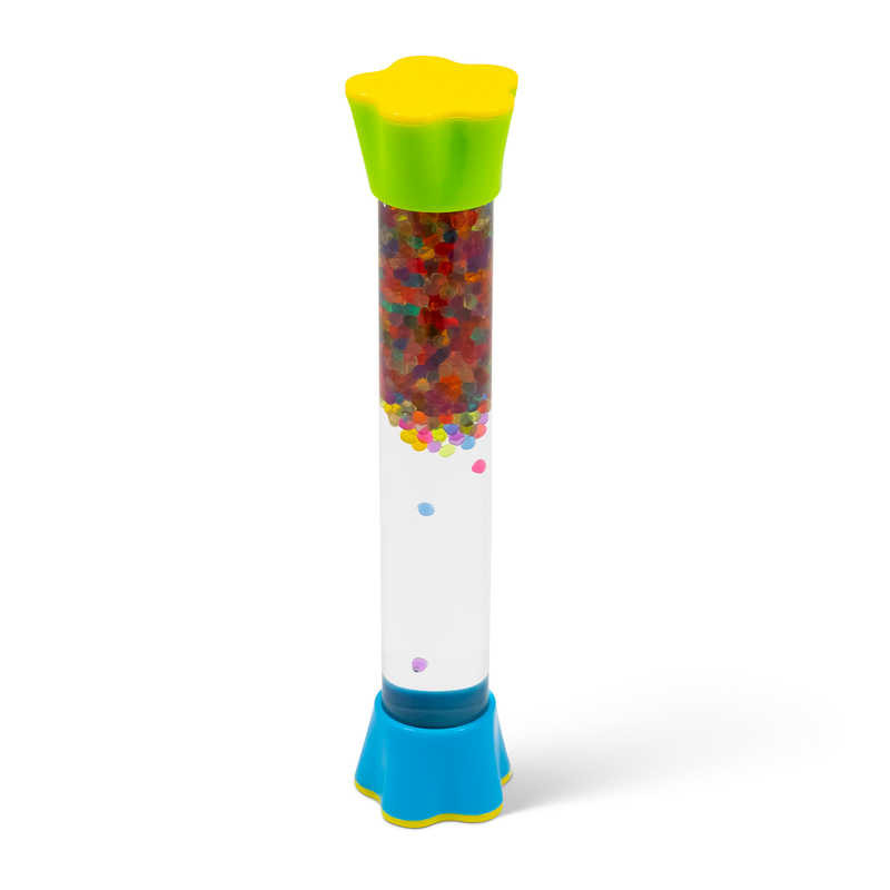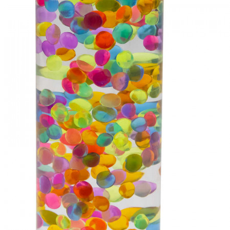 Es ist immer wieder faszinierend und beruhigend, den bunten Perlen zuzusehen, die beim Drehen der Röhre sofort nach oben schwimmen. Ein visuell beeindruckendes und taktil befriedigendes Sinneserlebnis.