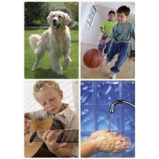 Speziell auf jüngere Kinder zugeschnitten, besteht dieser tönende Bildersatz aus einem reichhaltigen Bildarchiv, das in 6 Themen unterteilt ist und sich eng an der Umgebung eines Kindes orientiert: Tiere, Musik, Gegenstände, Beförderungsmittel, Gesichtsausdrücke, Freizeitaktivitäten. Der Spielsatz besteht aus 30 Fotos im Riesenformat und im handlichen kleineren Format und einer Audio-CD mit den entsprechenden Geräuschen. Die Box ist eine umfassende Unterstützung bei der Entwicklung der Sprache und beim Aufbau des kindlichen Wortschatzes. Mit pädagogischem Leitfaden.
