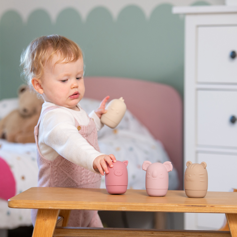 Diese Tier-Spritzspielzeuge sind perfekt, um mit Wasser zu spielen und die Badezeit lustiger zu gestalten. Das Set enthält einen Pinguin, einen Tiger, ein Koala und ein Schwein, die alle aus sicherem, lebensmittelechtem Silikon gefertigt sind. Die raffinierten Tierchen können auch aufgedreht und gefüllt werden. So wandeln sie sich im Handumdrehen zu Rasseln, die die auditive Wahrnehmung ansprechen. Das clevere Mix-and-Match-Design ermöglicht es Kindern, die Ober- und Unterteile zu tauschen, was Kreativität und fantasievolles Spielen fördert. Werden Silisoft mit riechbaren Zutaten gefüllt, schaffen sie ein einzigartiges olfaktorisches Erlebnis für ältere Kinder. Diese können die verschiedenen Düfte erkunden, was ihren Geruchssinn und ihre Neugier anregt.