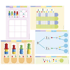 In diesem hochwertigen neuen Lernspiel werden Kinder ab 5 Jahrenerste mathematische Erfahrungen vermittelt. Es gibt unendlich viele Kombinationsmöglichkeiten,die unterschiedliche mathematische Bereiche wie Logik, Raum, Anzahl, Größe und Zeit umfassen. Anhand von 48 Vorlagen lernen Kinder im selbstständigen Spiel Probleme der räumlichen oder logischenAnordnung, der Kodierung und vieles mehr zu lösen.