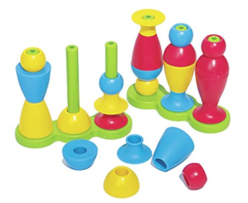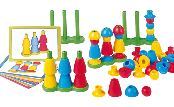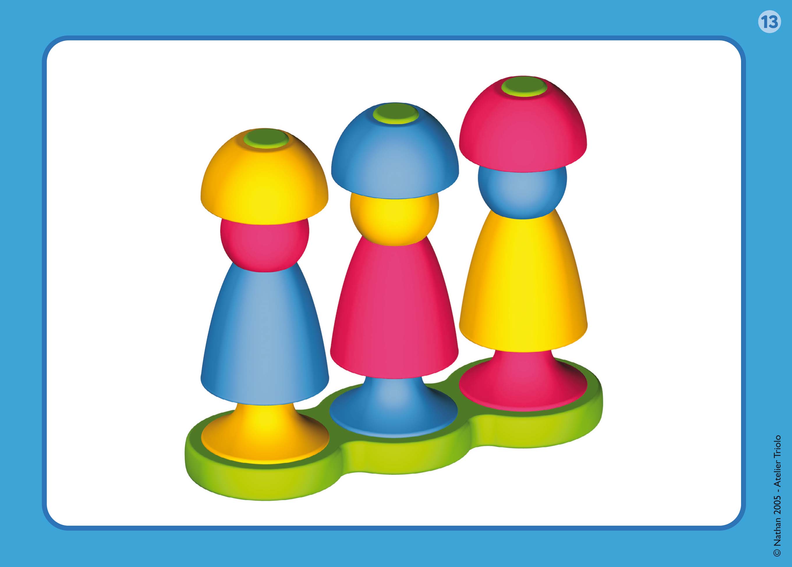Mit Triolo lernen Kinder spielerisch, abgebildete Modelle in der Realität nachzubilden. Die verschiedenen einfach gehaltenen Formen aus Kunststoff sollen in einer vorgegebenen Anordnung auf die Stifte aufgesteckt werden. 4 Formen in 3 Farben bieten viele Kombinationsmöglichkeiten. Ein Stapelspiel, das die Fingerfertigkeit schult, die räumliche Vorstellungskraft entwickelt und beim Erlernen von Farb- und Formennamen hilft.