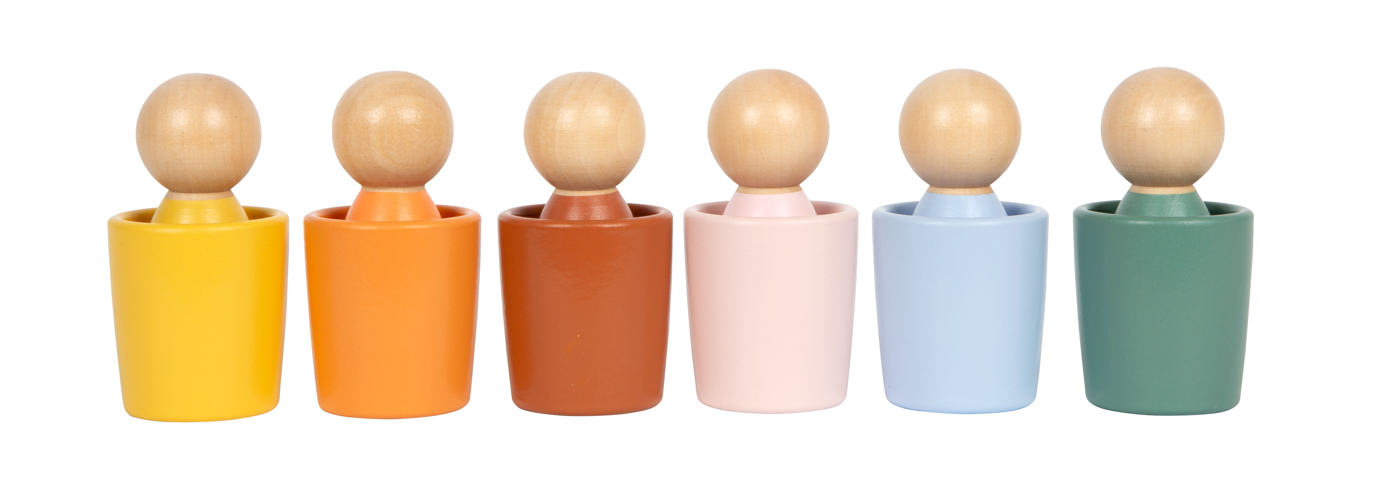 - Montessori Sortierspiel mit 6 Figuren und 6 farbigen Bechern aus FSC® 100%-zertifiziertem Holz